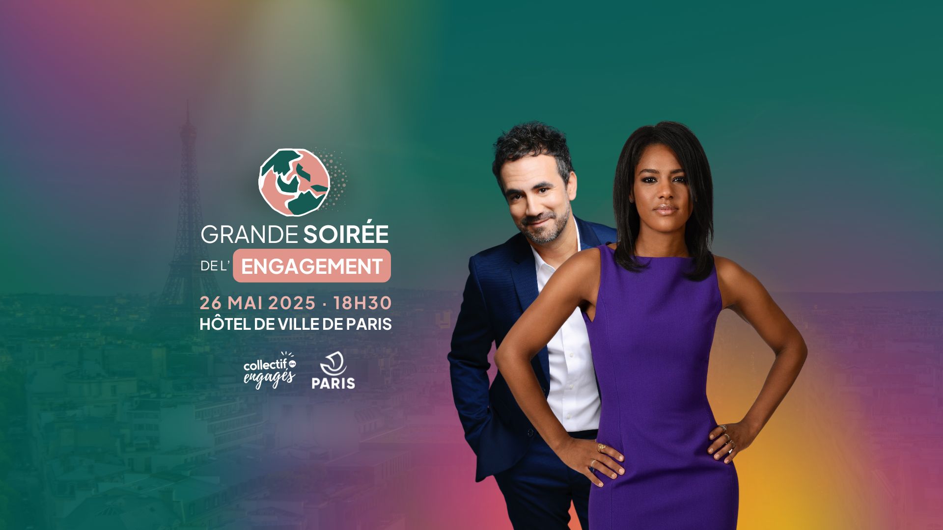 Le Collectif des Engagés vous donne rendez-vous le lundi 26 mai 2025 à 18h30 à l’Hôtel de Ville de Paris pour la seconde édition de la Grande Soirée de l’Engagement. Gratuit et ouvert à toutes et tous, cet événement mettra à l’honneur la lutte contre les discriminations, à travers des témoignages marquants, des performances artistiques engagées et la remise des Trophées Nationaux de la Solidarité, en présence des co-président·e·s du Jury, Élisabeth Moreno et Sylvain Reymond. Une soirée festive et citoyenne, animée par Marie-Aline Méliyi et Alex Goude, avec la participation de nombreuses personnalités engagées, et en présence de près de 500 acteurs de la solidarité.