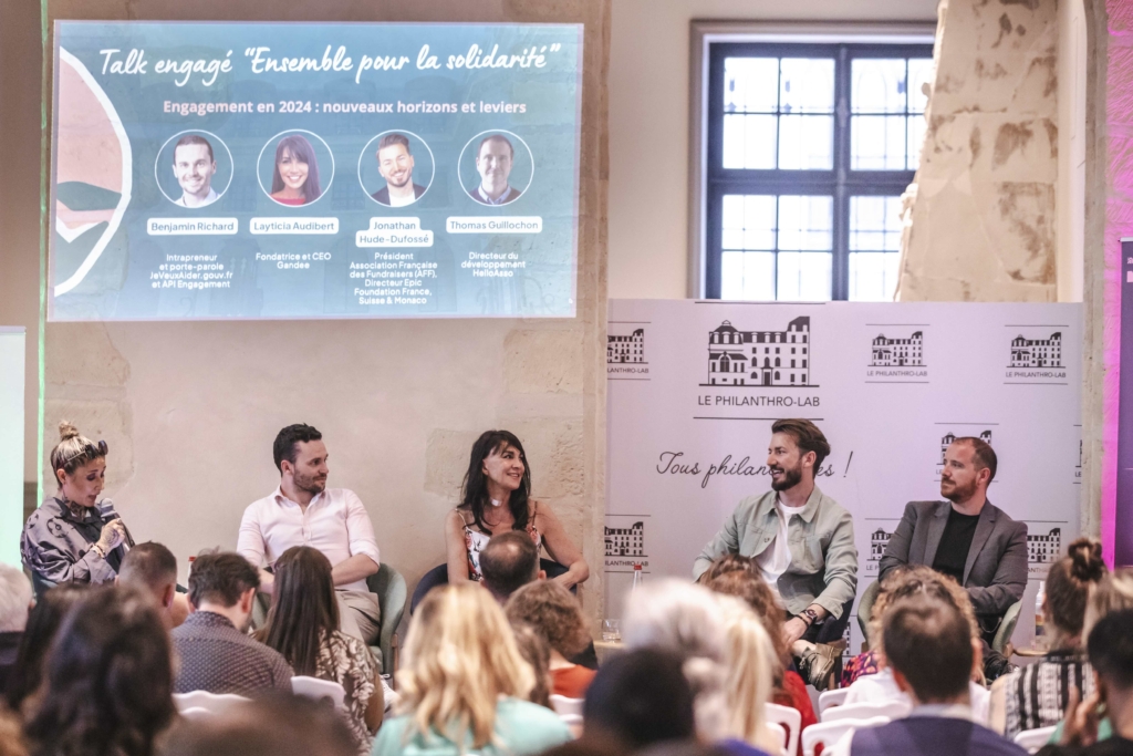 La seconde partie, avec Benjamin Richard (porte-parole des start-ups d’État JeVeuxAider.gouv.fr et API Engagement), Layticia Audibert (fondatrice et CEO de Gandee), Jonathan Hude-Dufossé (président de l’Association Française des Fundraisers), et Thomas Guillochon (directeur du développement d’HelloAsso), a porté sur la facilitation de l’engagement citoyen via les plateformes numériques, la création de solutions de collecte de fonds ludiques et accessibles, les nouvelles stratégies de fundraising, et l’impact des outils numériques sur la collecte de fonds associative.